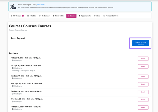 From the Underway section of the Courses tab, click on the desired Course you would like to register onto.