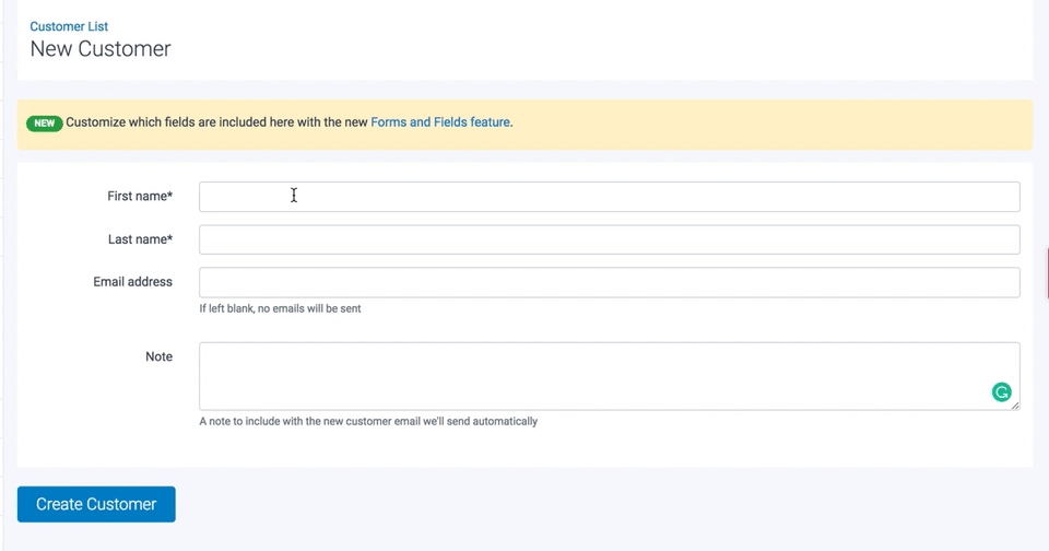If you like you can add an optional note. This will be sent to the customer along with the invite email.