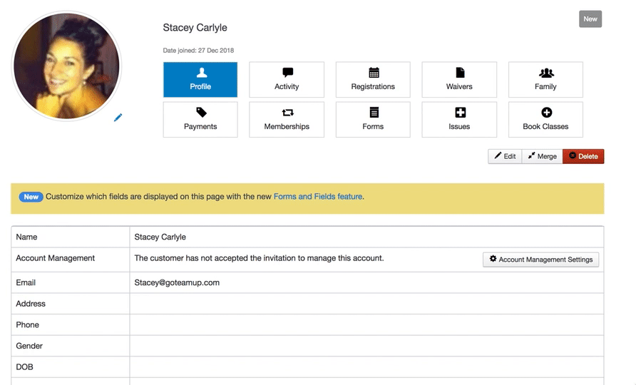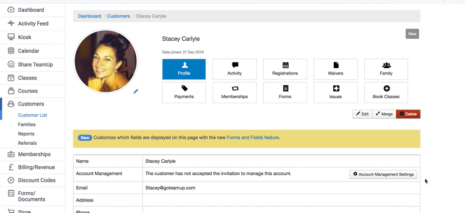When you add a customer, they will receive an email invite to complete the creation of their account with TeamUp.