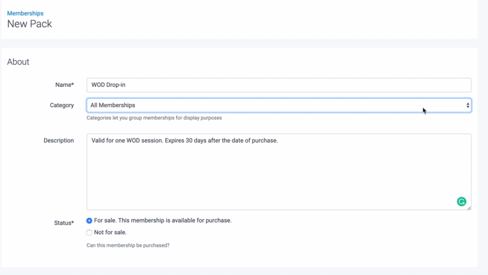 *Note: any categories you create will be visible to you from Memberships >> Memberships. Customers will also be able to view these categories from the customer site. If you have any empty categories, or categories that contain hidden memberships, these will not be displayed on the customer site.