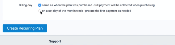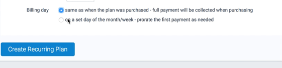 If you select 'same as when the plan was purchased - full payment will be collected when purchasing' - the customer will make a full payment on the date they purchase the membership. The customers' billing periods will then align to this day.