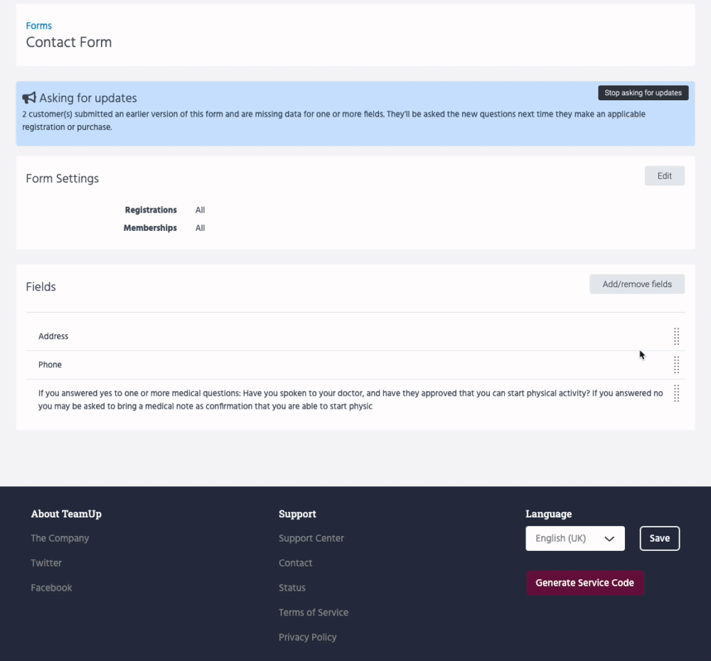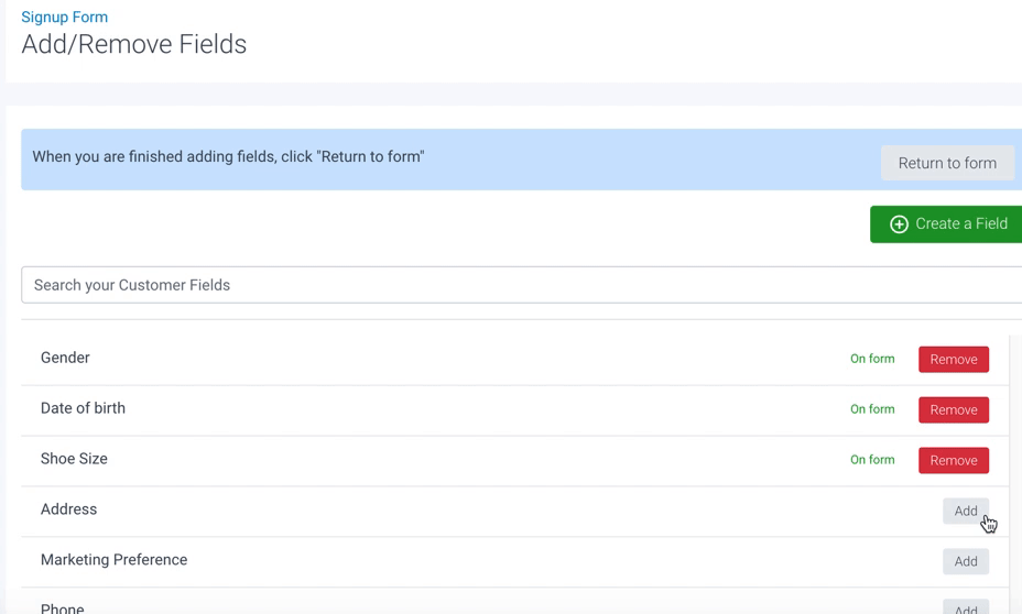 There will be times when you'll want to add/remove an existing field to a form or add a question to a form that doesn't exist in the Customer Field section.