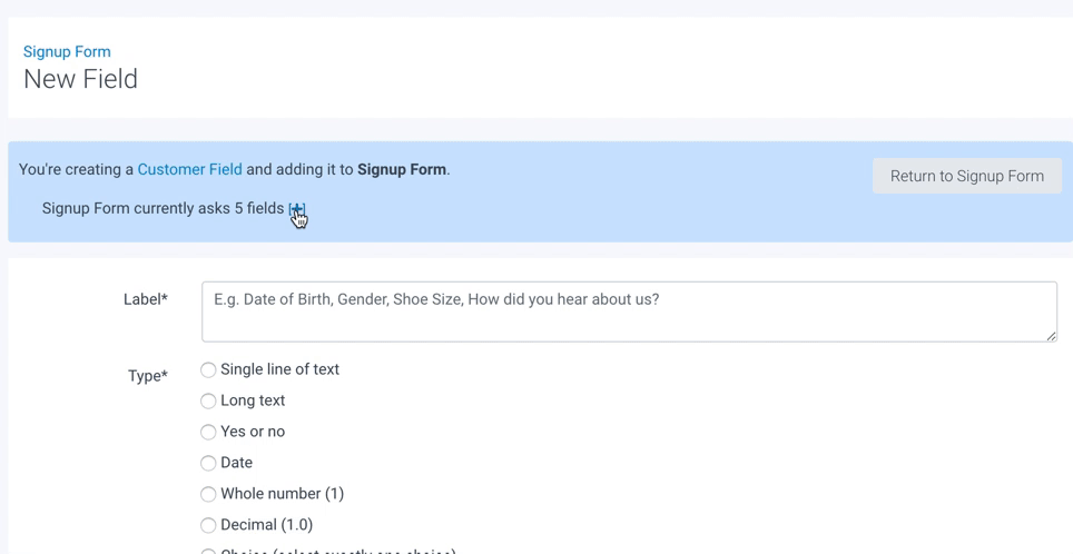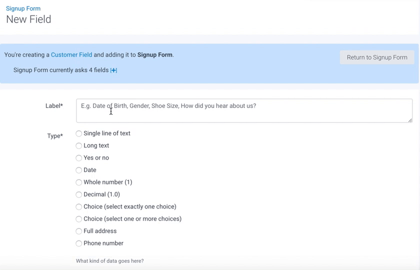 Whether it is asked when you create customers via your business dashboard. Fields set as "Ask when adding customers via the business dashboard?" are shown to staff when creating customers on your business dashboard.