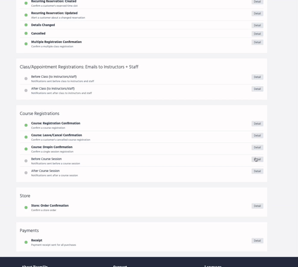 Let's take a look at 'Before Course Session' as an example. Click 'Detail' next to the notification to get started.