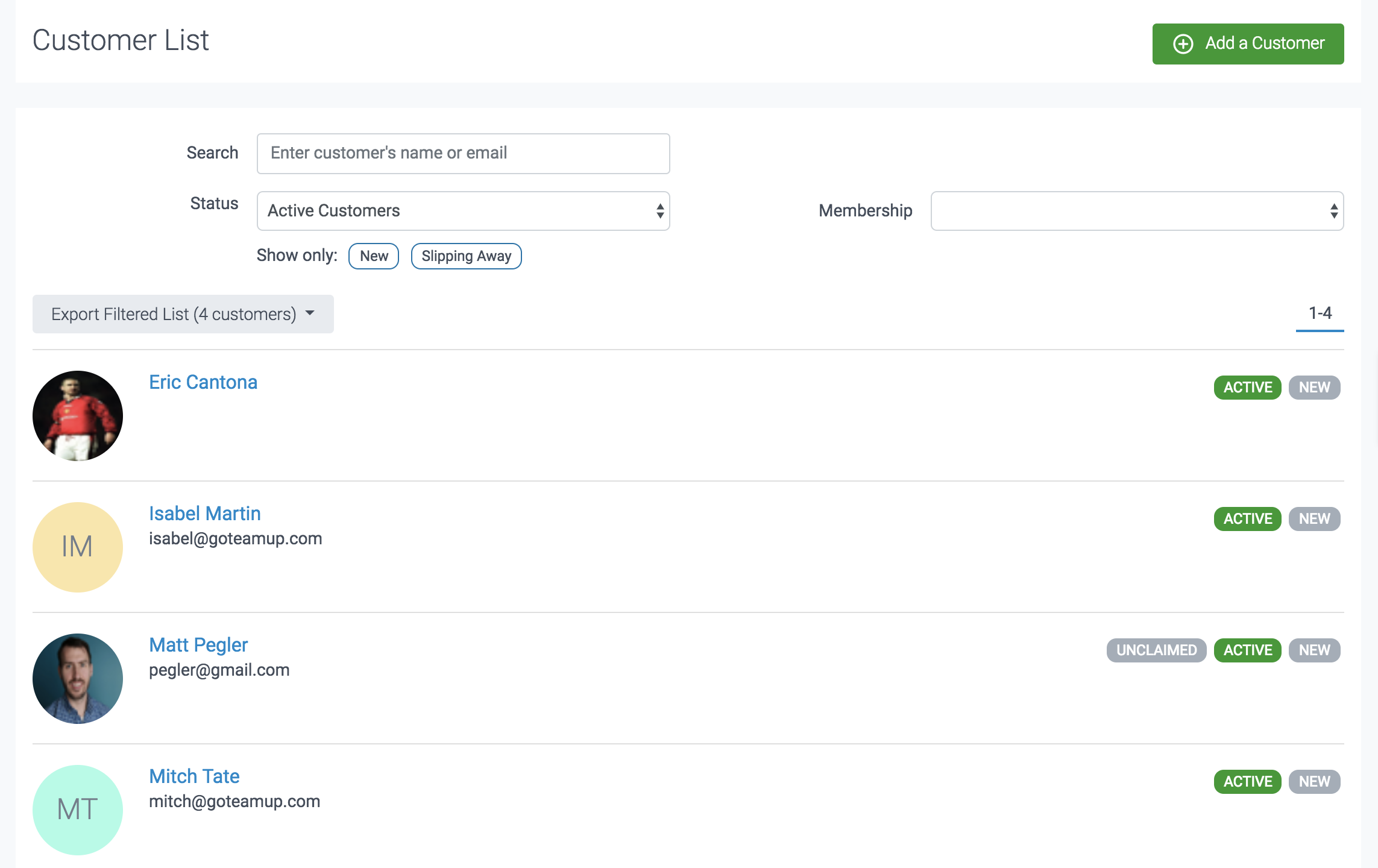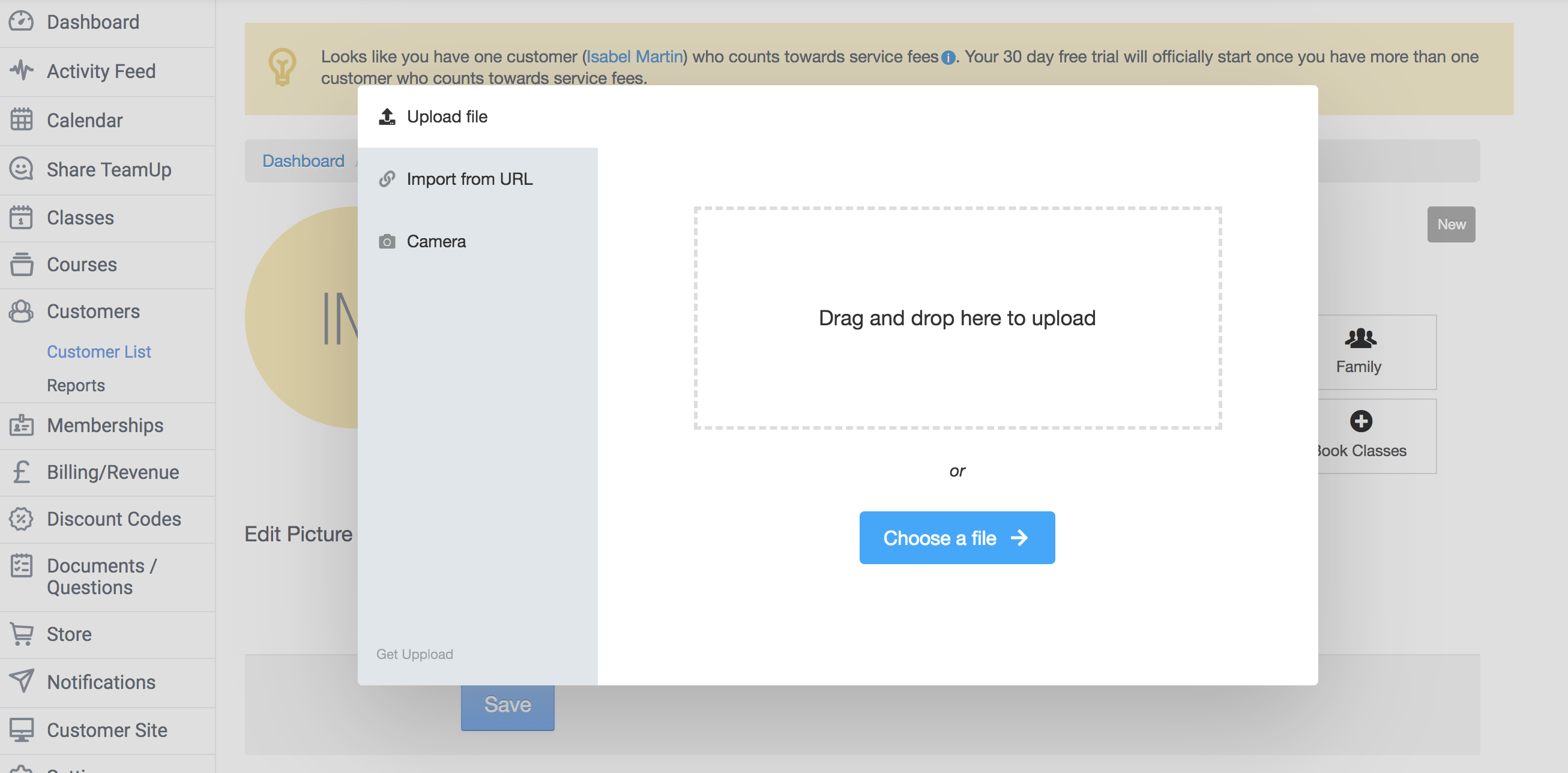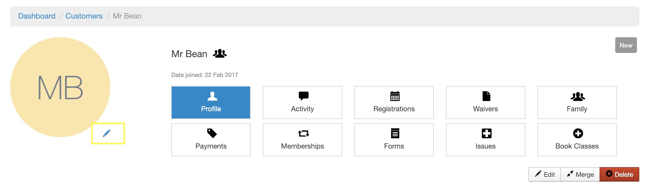 An image can be added to a customer's profile. This profile picture is used as the icon for their TeamUp account and is also displayed next to their name on the customer list.