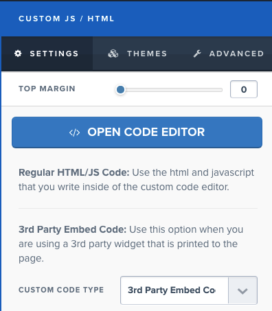 Select the area you want to install your TeamUp widget, and add a "Custom JS/HTML" element.