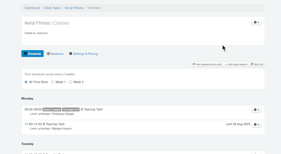 This feature allows you to choose whether you make classes visible to everyone, membership holders, or to the business only.