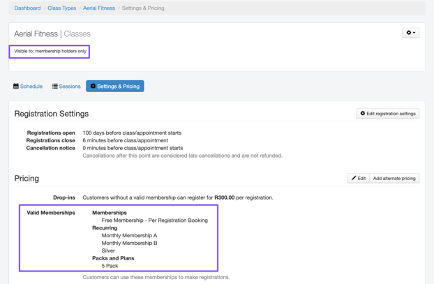 In the below example, if the class visibility was set to "Membership Holders", this class would only be visible to customers who owned the "Valid Memberships".