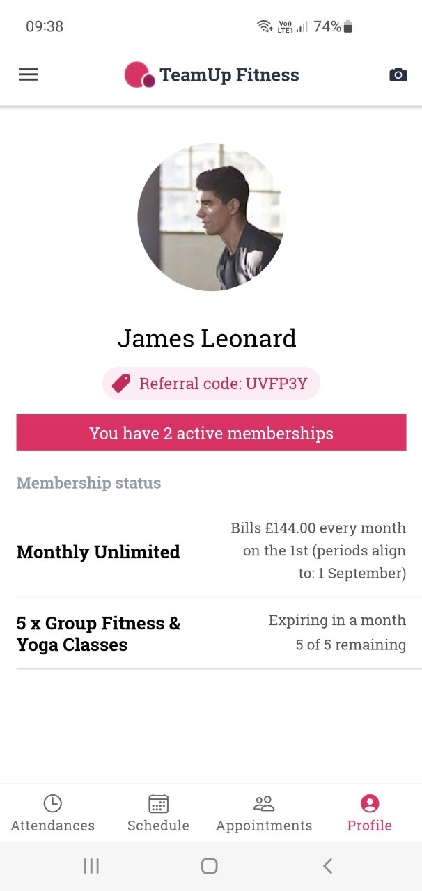 If a business you're signed up for has a referral program, you'll be able to view and share your referral code from here. To share your code, tap the code. Then, tap the share button to open the sharing menu on your phone.