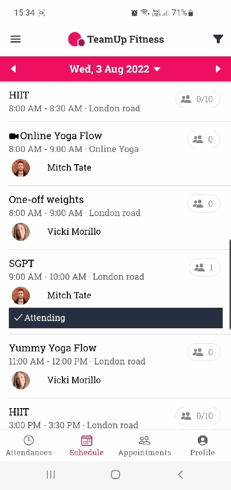 If a class is full and there is a waitlist available, you will be able to join the waitlist and receive push notifications to let you know when a spot opens.