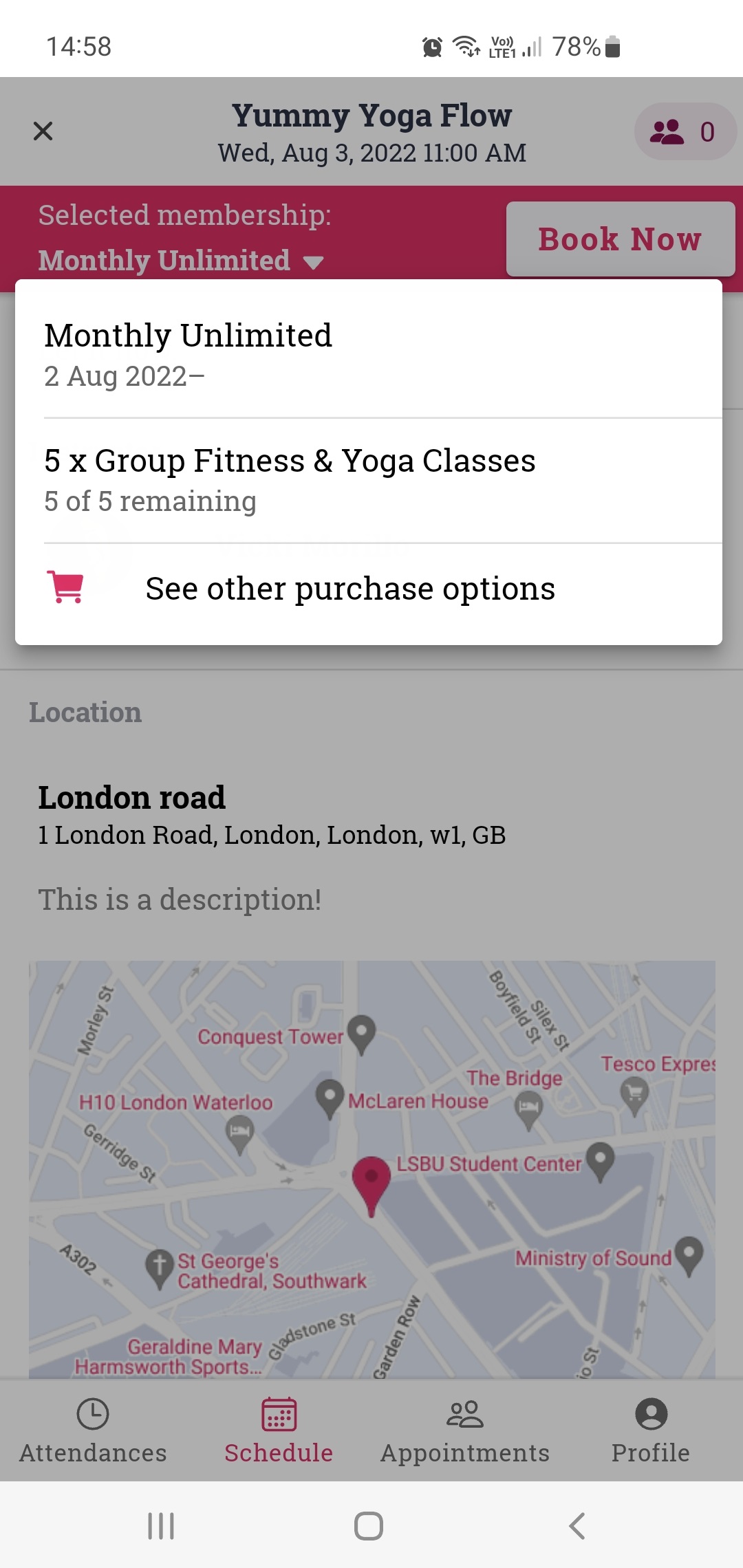 If you have multiple memberships or class passes, you'll be able to toggle between them and select which one you want to use to book the session.