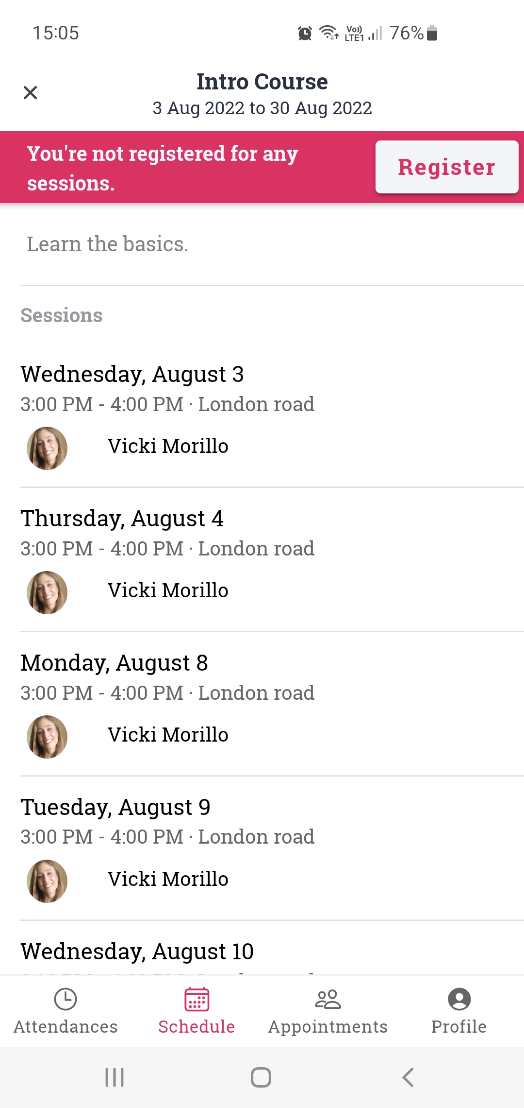 Browse the schedule for information about classes and to sign up for available classes, courses and waitlists