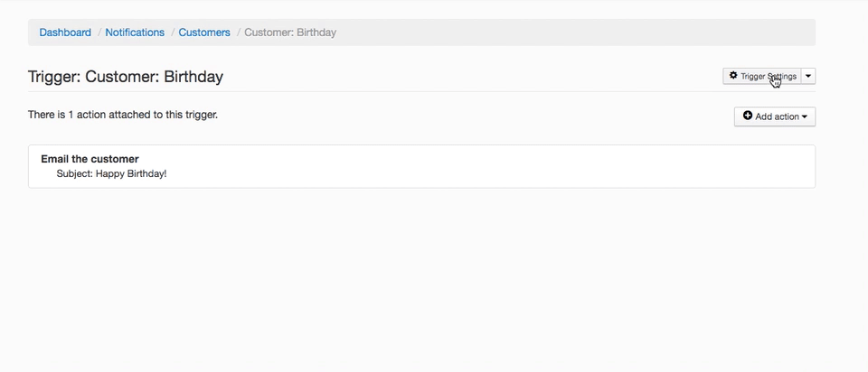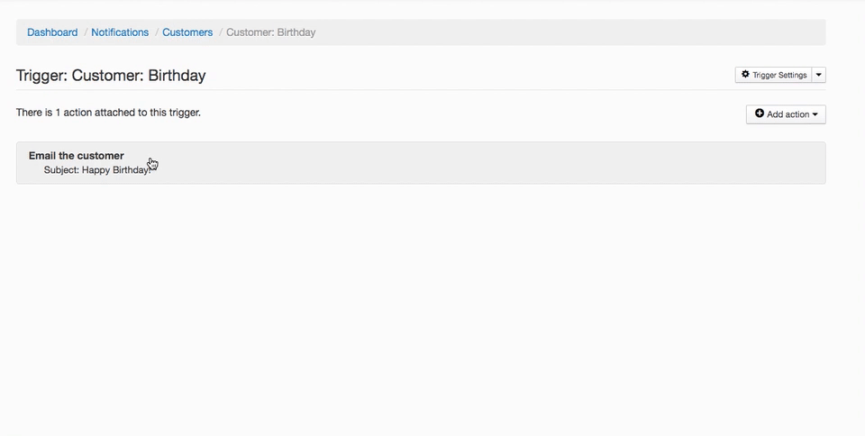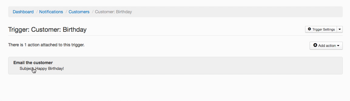 In this example, the customer will be emailed, with the subject Happy Birthday!