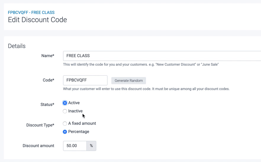 If you need to make the code active again, simply follow the steps above and select the "Active" status.