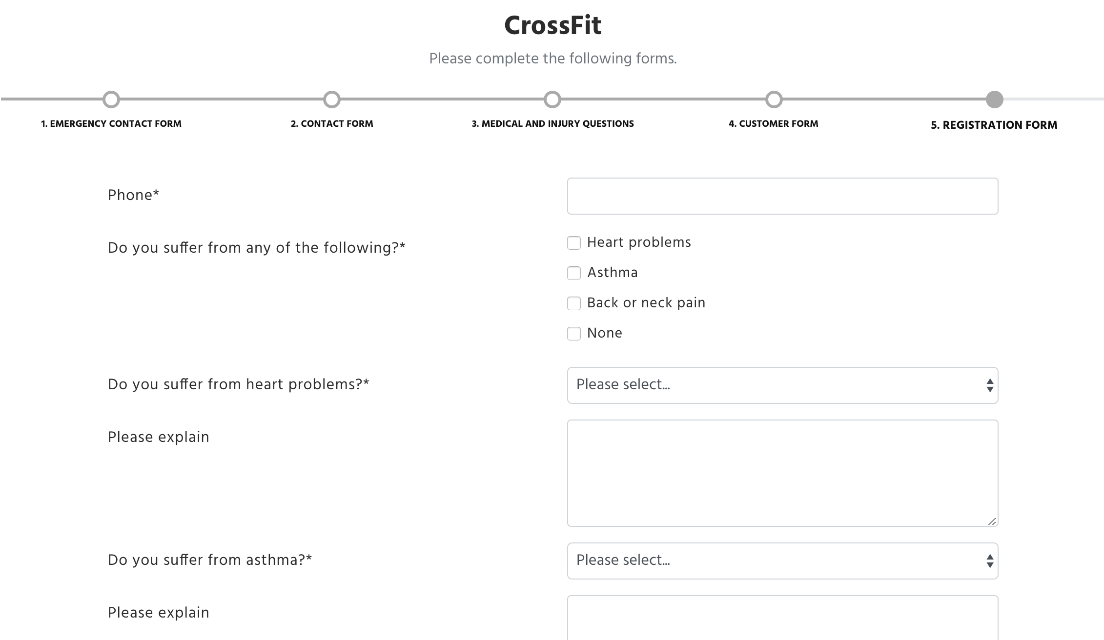 For this, there are two options: registrations to events (classes/appointments/courses) and memberships purchase. Within each one, you can decide whether the form is required for: