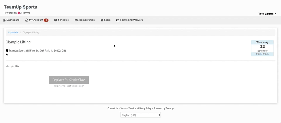 If they click on the Olympic Lifting class, they would be required to complete the new joiner form prior to registering: