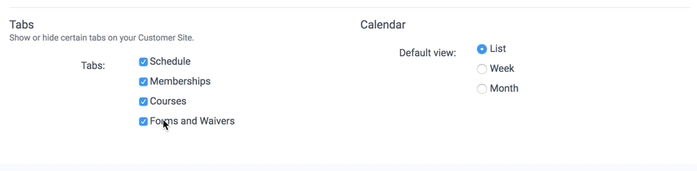 Finally, select the tabs you'd like to display to your customers, as well as the default landing view for your event schedule.