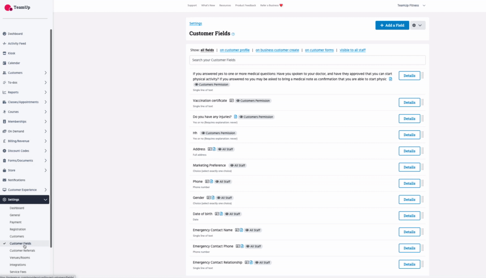 Once done the field deleted will no longer be displayed in your Customer Field page, customer profile page and/or any forms previously displayed.