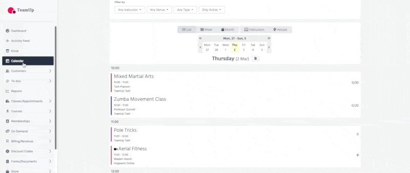 All you need to do is create your classes on TeamUp and meetings will be created in Zoom by the integration about 48 hours before the online class.