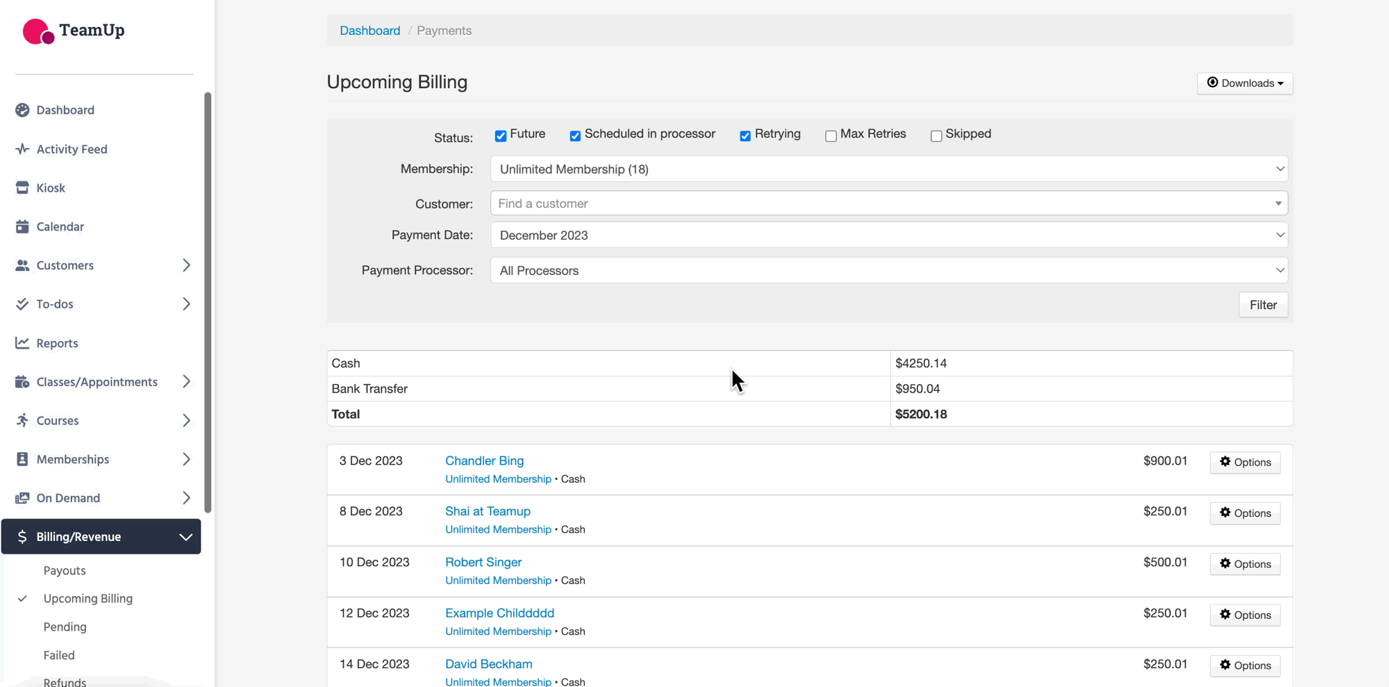 In this example, we want to look at all customers on the Unlimited Membership, and payment dates in December 2023.