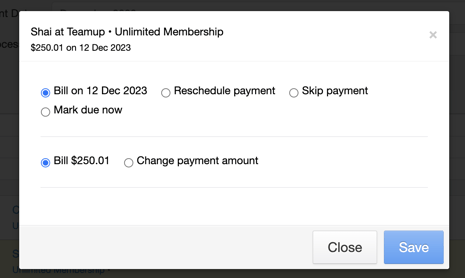 - Skipping a payment. Once skipped they can be reviewed from upcoming billing.