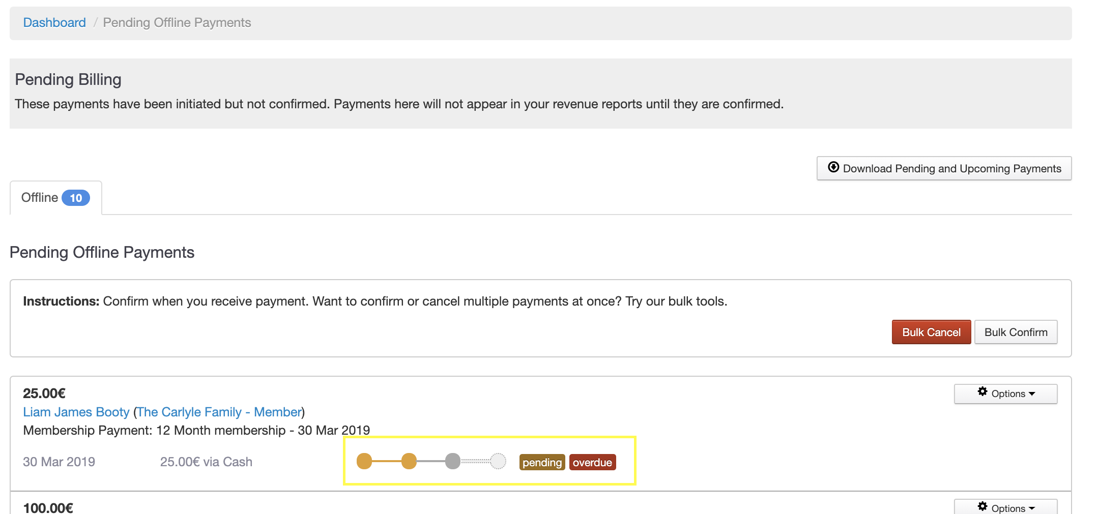 Now any payments that are considered overdue, will be marked so from Billing/Revenue >> Pending.