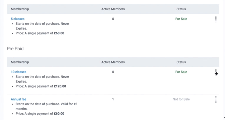 Organise your memberships in an order that works best for you. The order you set the memberships in is how they will appear on your customer-facing 'Memberships' section.