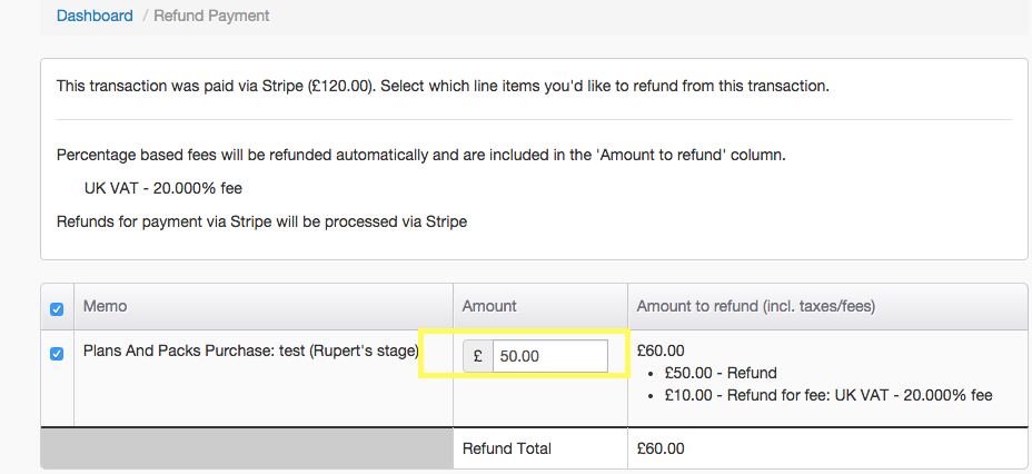 You can now edit the amount. Just type the desired amount, and then click anywhere outside this box to update the refund total: