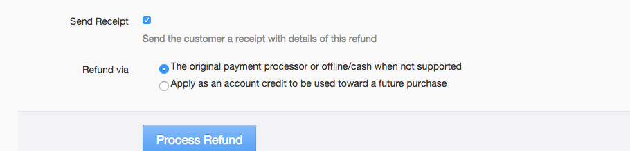 You will also have the option to send a receipt to the customer, and decide whether to refund via original payment processor or offline/cash when not supported