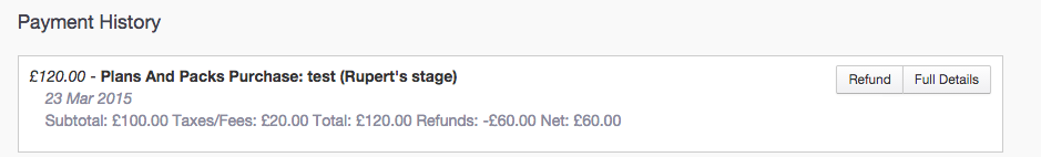 Once completed, click 'Process Refund'. Payment history will now show the partial refund: