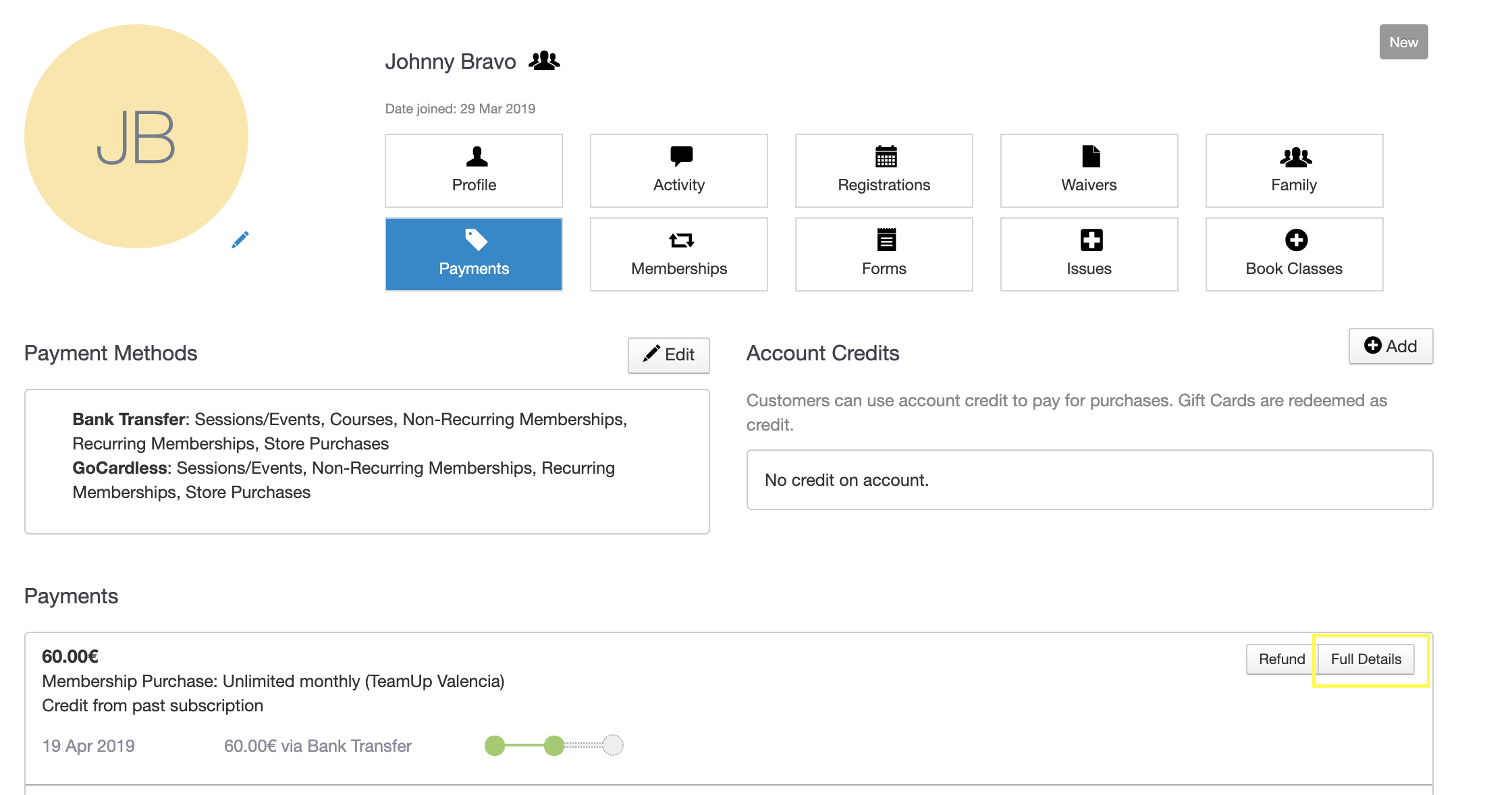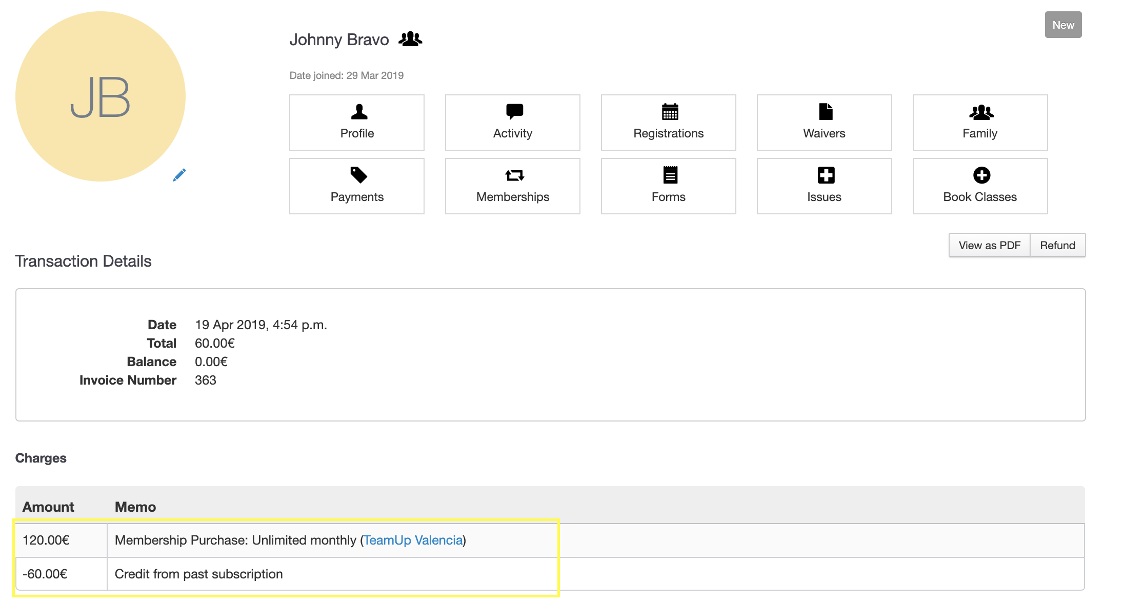 You will now be able to see the total credit that was applied from a past membership, along with various other information on the transaction.