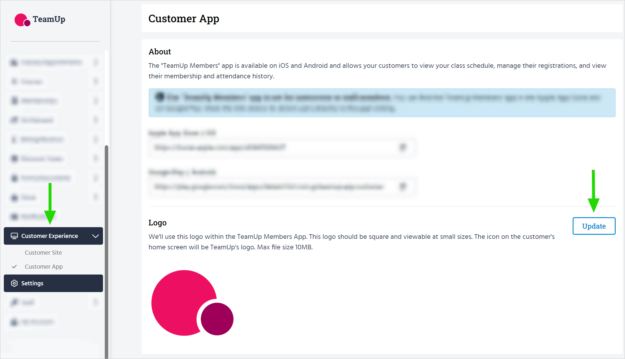 The icon on the customer's home screen will continue to be TeamUp's logo.