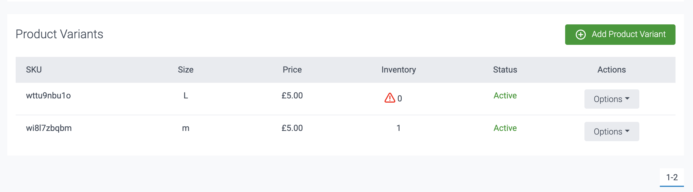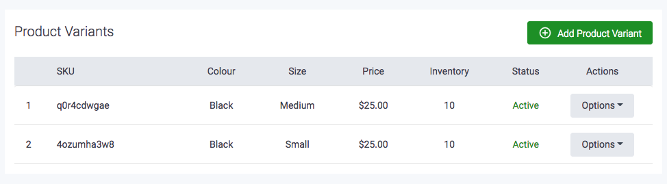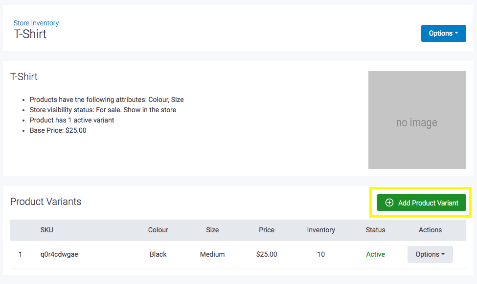Once saved you'll land back on the product. Click 'Add Product Variant' from here.