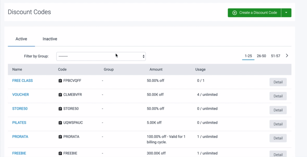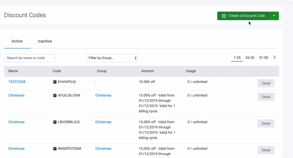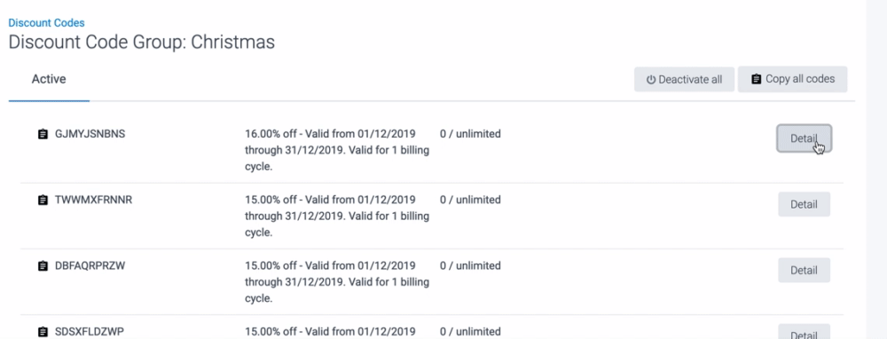If you need to edit a specific code within the group, click 'Detail' next to the code and then, 'Edit'.