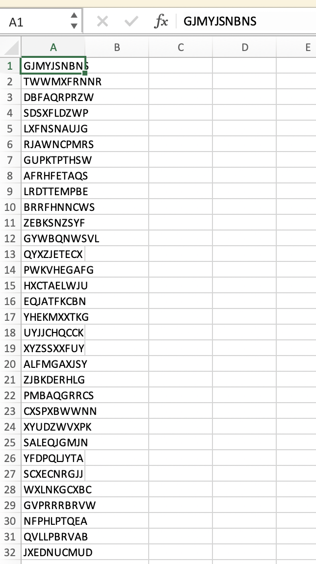 In the example below, the codes have been pasted into an Excel spreadsheet: