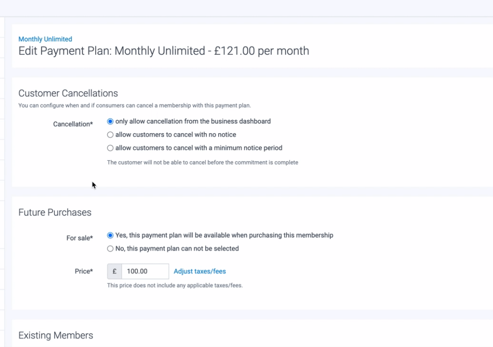 Scroll down to the Existing Members section within the Edit Payment Plan page and click 'Edit prices tool'.