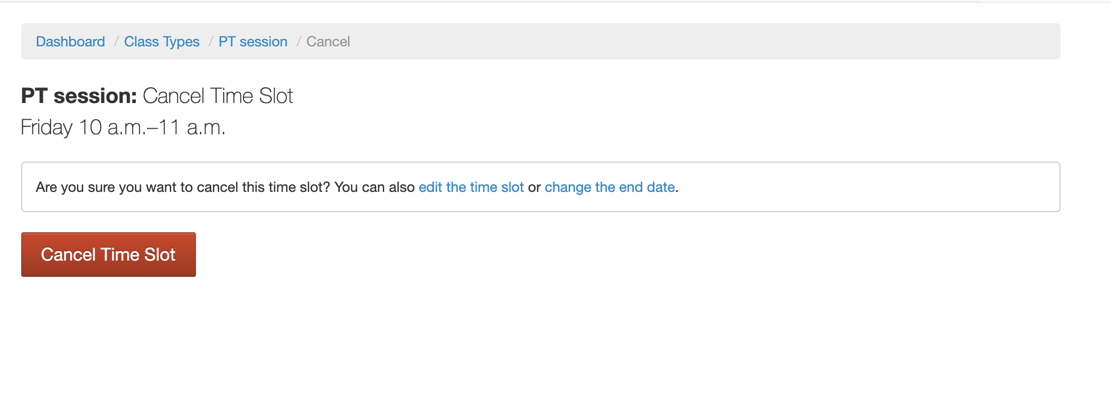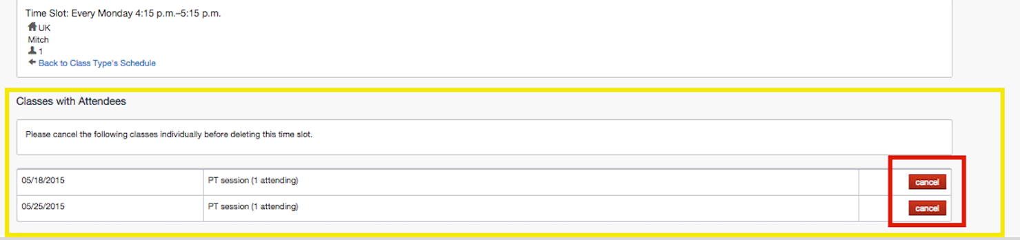 How to cancel a class time slot