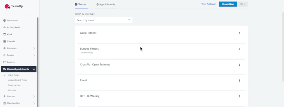 To change the name on the Class Type, head to Classes/Appointments >> Class Types >> click name >> click the cog and select 'Edit' >> change the name >> click 'Save Edits'.