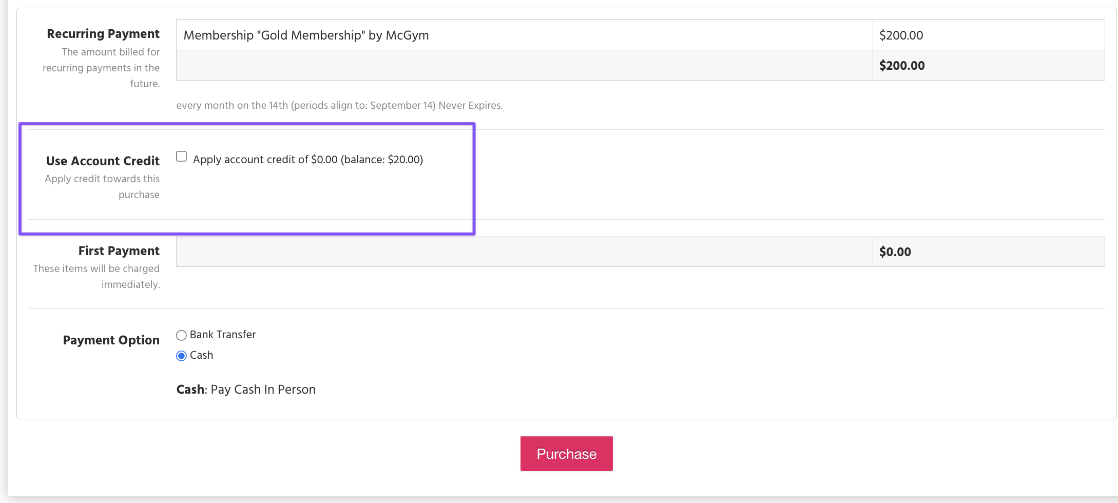 💡If you have account credit to use, you can also apply this to your next bill for this membership. Just tick the checkbox button, and click submit.