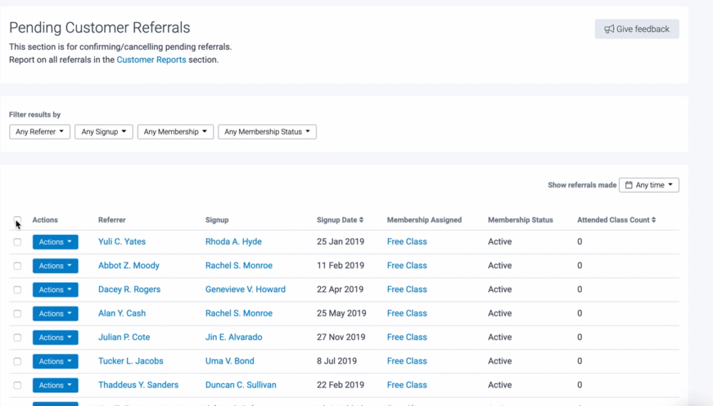 Once you've confirmed the referrals, the customers will move from the 'Pending' list to the'Confirmed' .