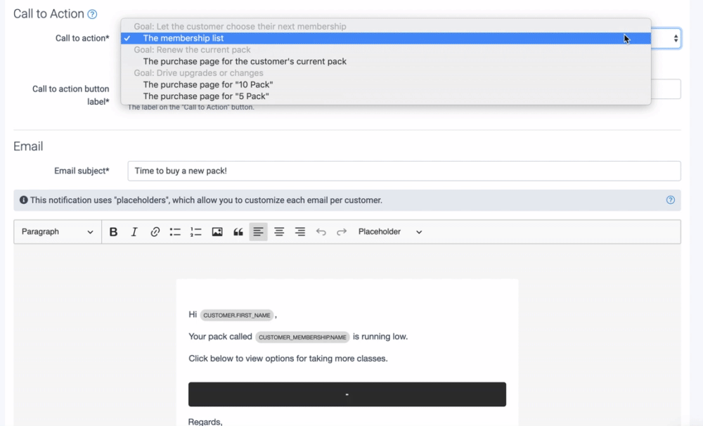 How to set up an email to let your customers know that their pack is running low. Remind them to purchase another pack or suggest an upgrade
