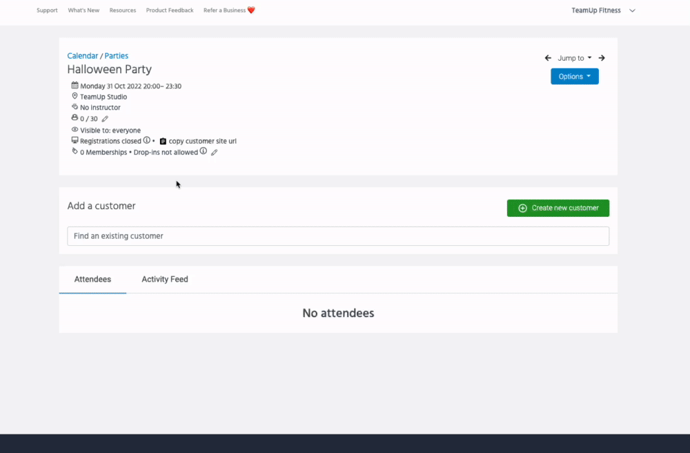 TeamUp allows you to schedule and take payment for one-off events, such as workshops, parties, special classes, etc., quickly and easily.