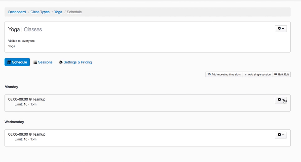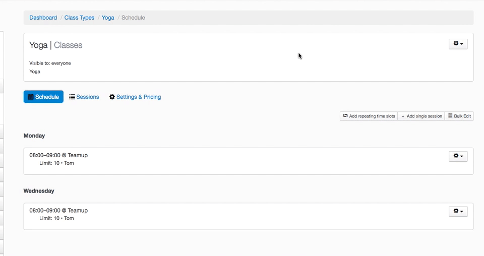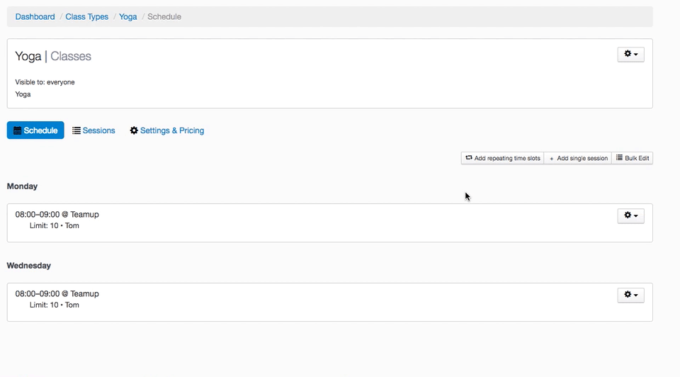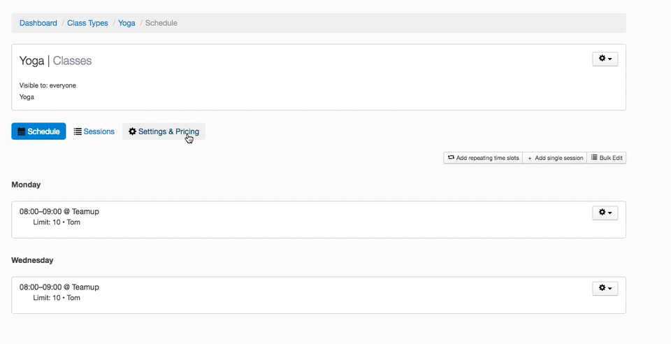 Head to Classes/Appointments >> Class Types and click on the desired Class Type.