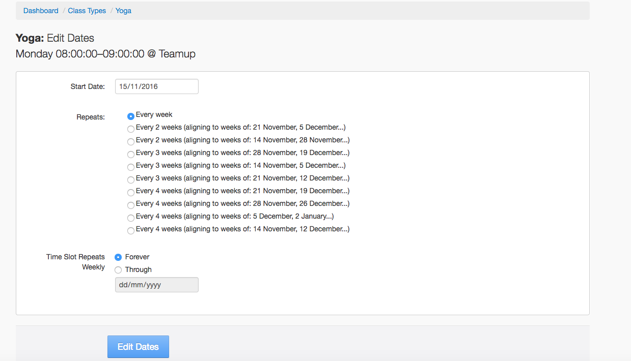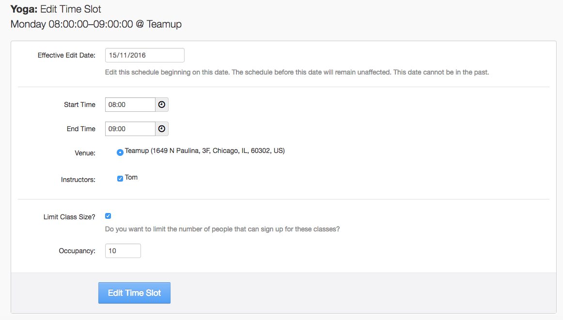 Edit the Venue, Instructor, Times, and Class Size Limits.