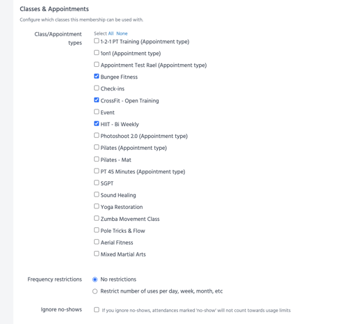 💡 Frequency restrictions allow you to limit class access further by day, week, month, or year.