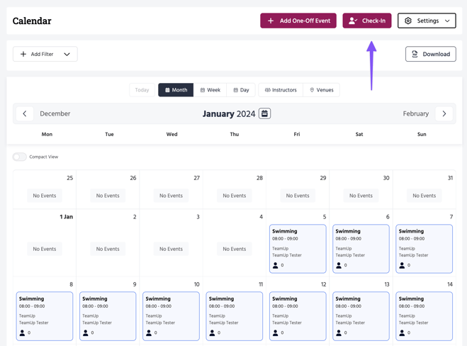 For example, if you offer Open Gym or any other activity that allows customers with applicable memberships to enter and use your facility without booking a specific class or appointment, you can use the Check In feature when they arrive on site to check them in.