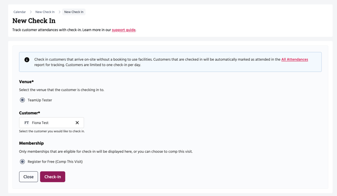 You can easily track your customer Check Ins from the All Attendances report.