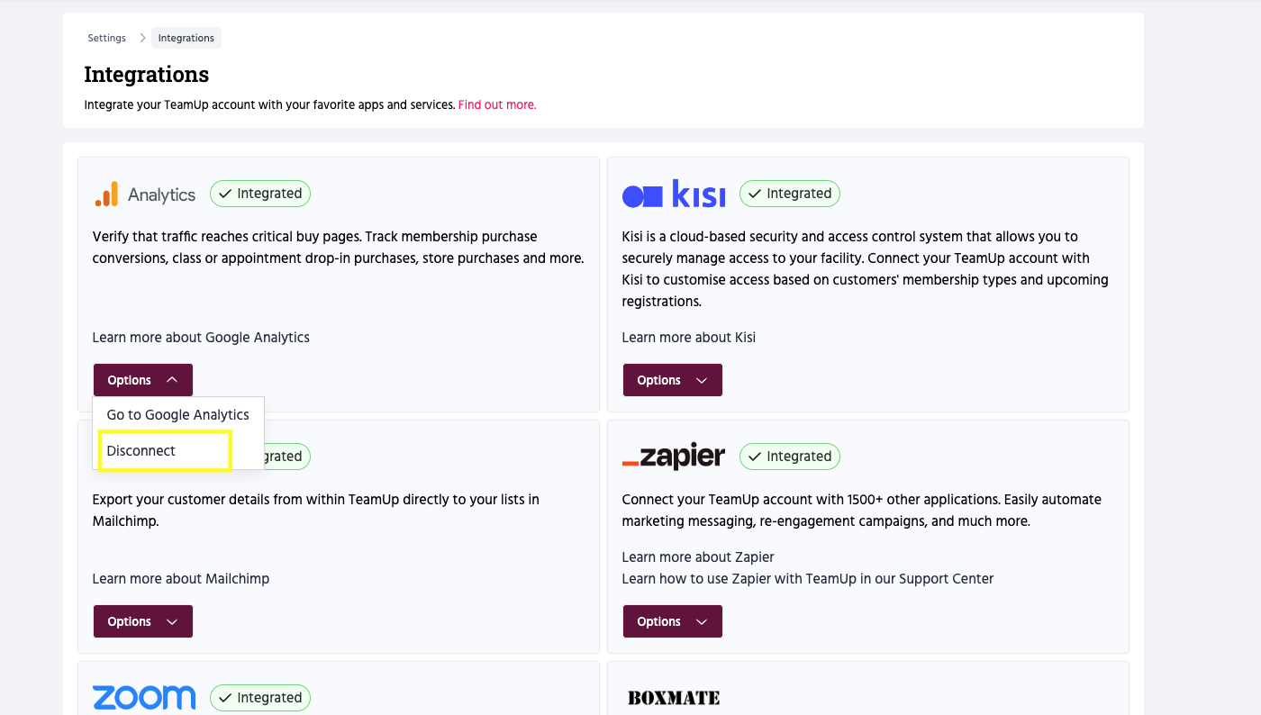 To disable the integration, head to Settings >> Integrations, head to the Analytics integration >> click 'Options-Disconnect'.