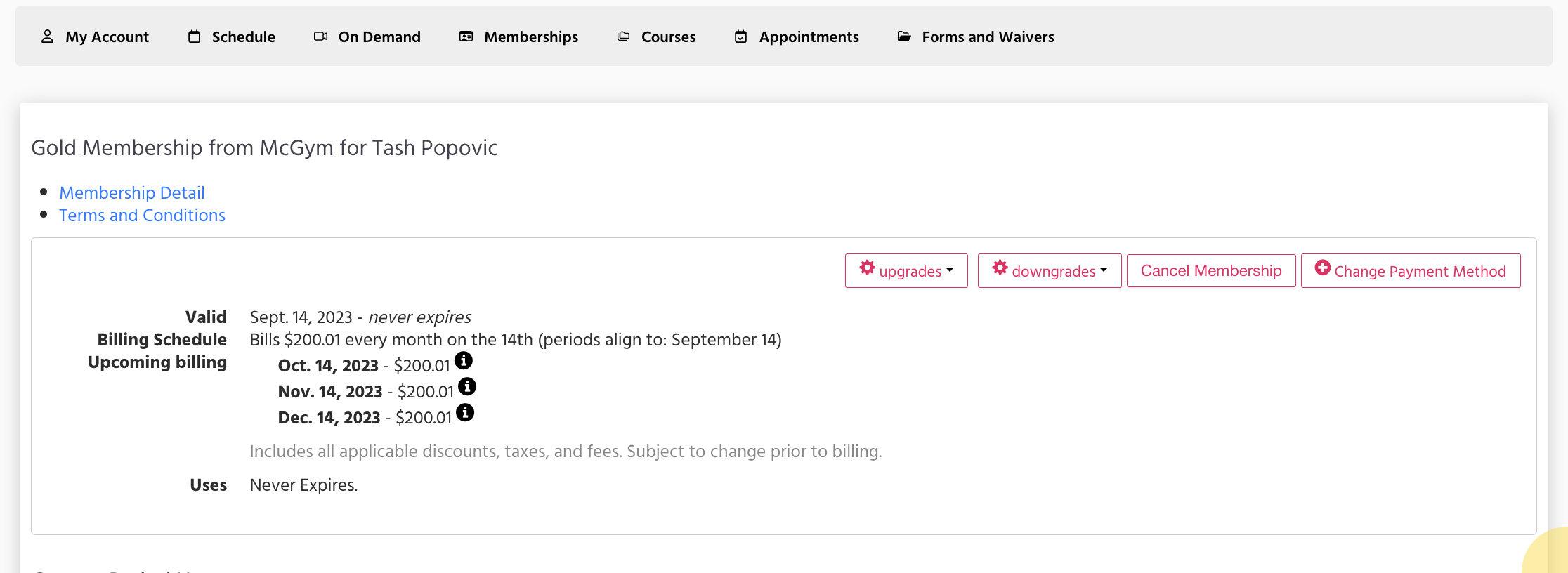 - Downgrades start at the end of your current billing cycle. The membership you're upgrading/downgrading will be canceled for you as part of this process.