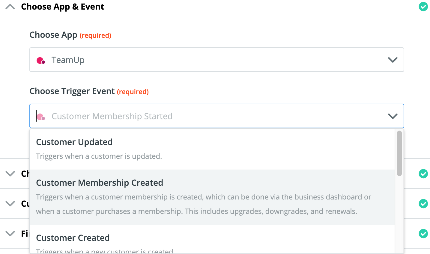 Once connected, you’ll be able to use one of our available triggers to pass data from TeamUp to ActiveCampaign.